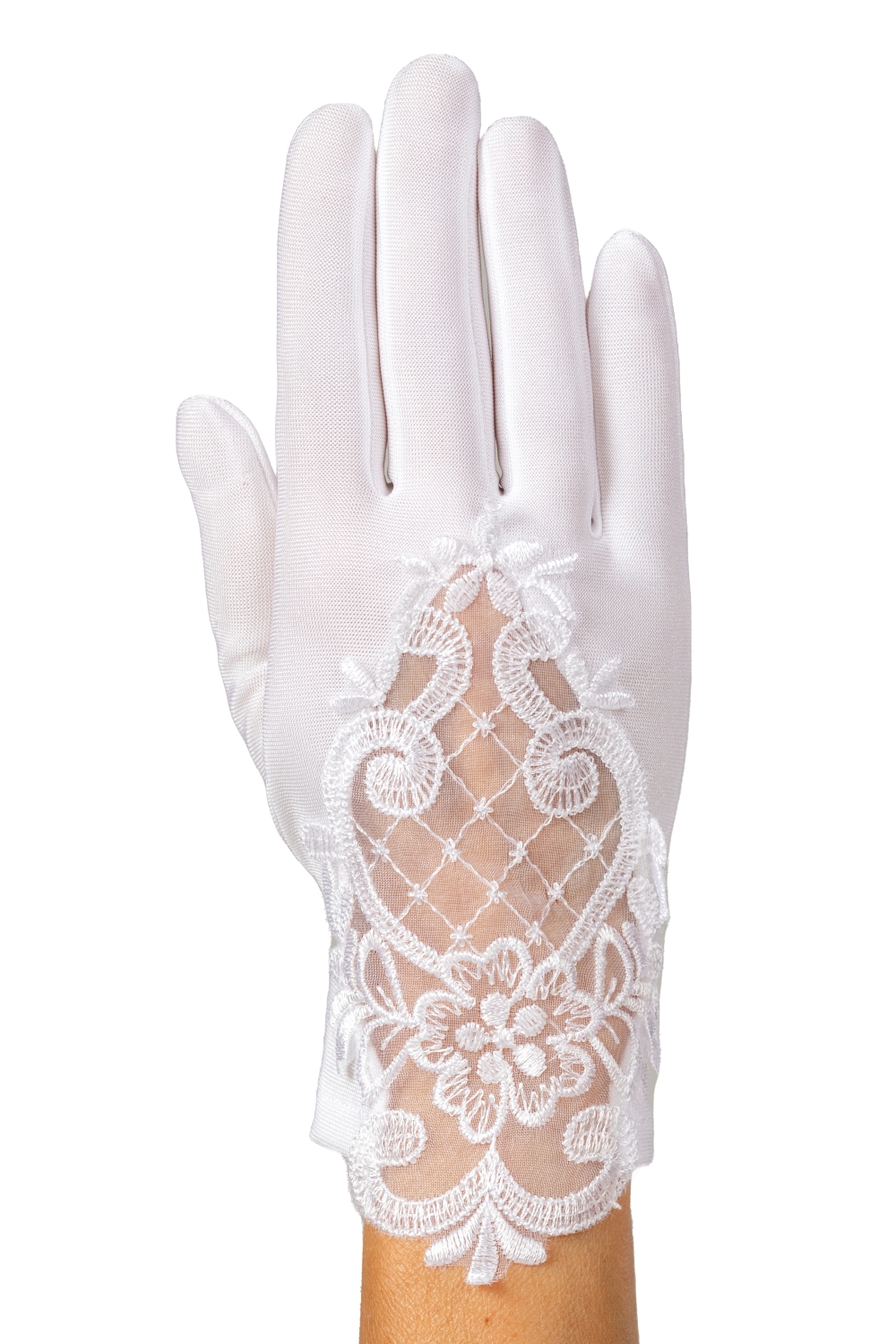 Klasyczne, białe rękawiczki, to modny dodatek do stroju pierwszokomunijnego dla każdej dziewczynki.